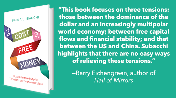 • The Cost of Free Money was named one of the Best Economics Books of 2020 by the Financial Times; “Subacchi, an expert on global financial and monetary systems, lucidly describes the failings of the international monetary “non-system” that emerged after the collapse of the Bretton Woods system in the 1970s, the dominance of the dollar, and the need to restore a co-operative and global monetary and financial order.” (Martin Wolf, 17 November 2020)